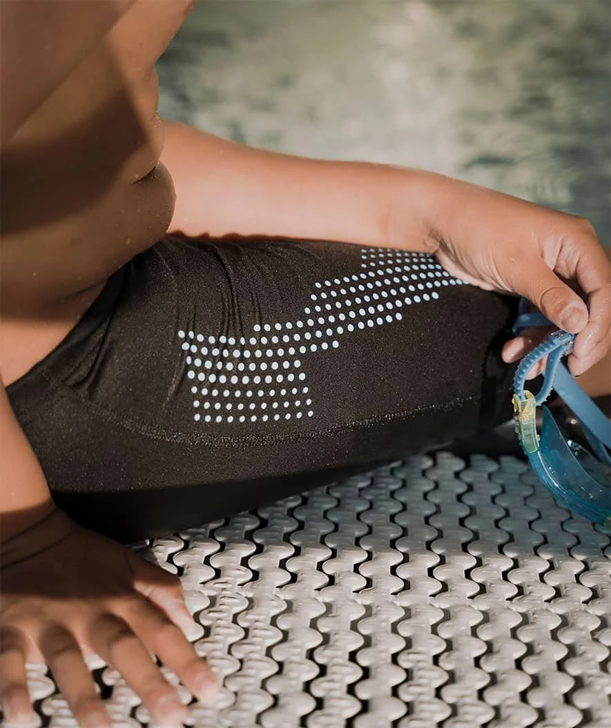 Designet er enkelt og stilig med en diskret hvit logo øverst i venstre hjørne, sammen med fine detaljer som piffer opp badebuksene, og en sidelengde som ender litt over kneet. Etter +90 tester på gutter i alderen 3-15 år, har vi lykkes med å finne akkurat passe lengde, hvor de verken er for korte og sitter halvveis opp på låret, men heller ikke så lange at de ender under knærne. Alle som har opplevd det motsatte tidligere, vil garantert kjenne den umiddelbare gleden med denne ideelle lengden.