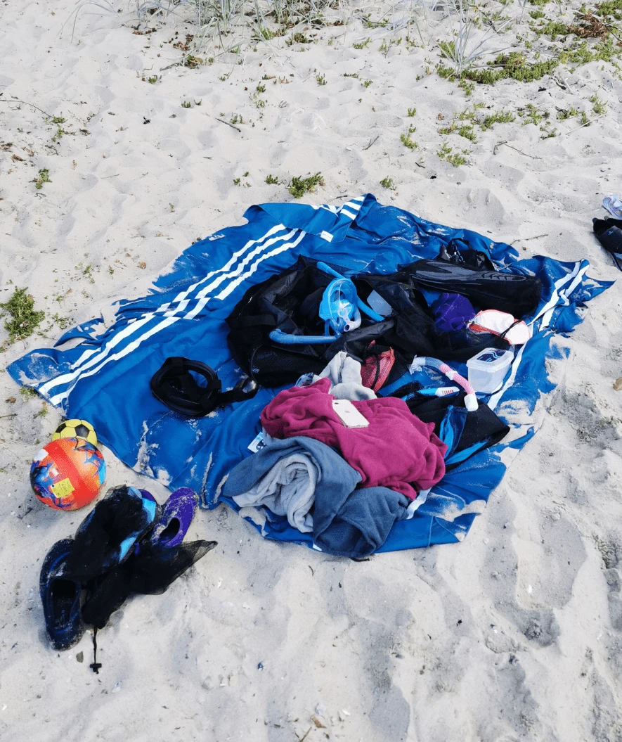 – At håndkleet (og en selv) etter bare noen minutter på stranden er fullt av sand som umiddelbart fester seg til det halvvåte håndkleet og ikke vil la seg fjerne.