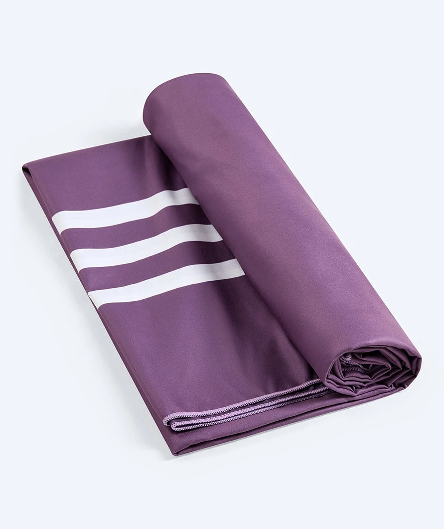 Det stilrene designet med to hvite streker på hver ende av håndkleet bringer tankene til sommer og sol og understreker vårt nordiske opphav. Her i fargen lilla, men det er også tilgjengelig i fargene: Sort, mørkeblå, sandfarget og blå.