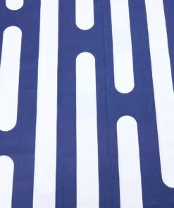 Det stilige designet med «brutte» streker med avrundede kanter i klar hvit farge midt på håndkleet bringer tankene til sommer og sol samt understreker vårt nordiske opphav.
