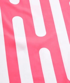 Det stilige designet med «brutte» streker med avrundede kanter i klar hvit farge midt på håndkleet bringer tankene til sommer og sol samt understreker vårt nordiske opphav. Her i fargen Pinky, men det er også tilgjengelig i fargene: Sort, blå, mørkeblå og purple.