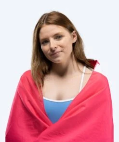 Watery Nebraska Microfiber Towel, her i flott Pinky farge, er raskt blitt et av våre mer populære og anbefalte håndklær, og brukes av svømmere, strandglade og reisende. Kanskje ikke så rart med de mange ekstraordinære funksjonene som ikke andre vanlige håndklær har?