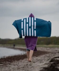 Håndkleet er 160 x 80 cm stort, akkurat som et vanlig stort badehåndkle, men tar mindre plass enn en drikkeflaske i den medfølgende gjenbrukbare nettingposen. Du kan derfor lett ta med deg håndkleet i badebagen eller kofferten.