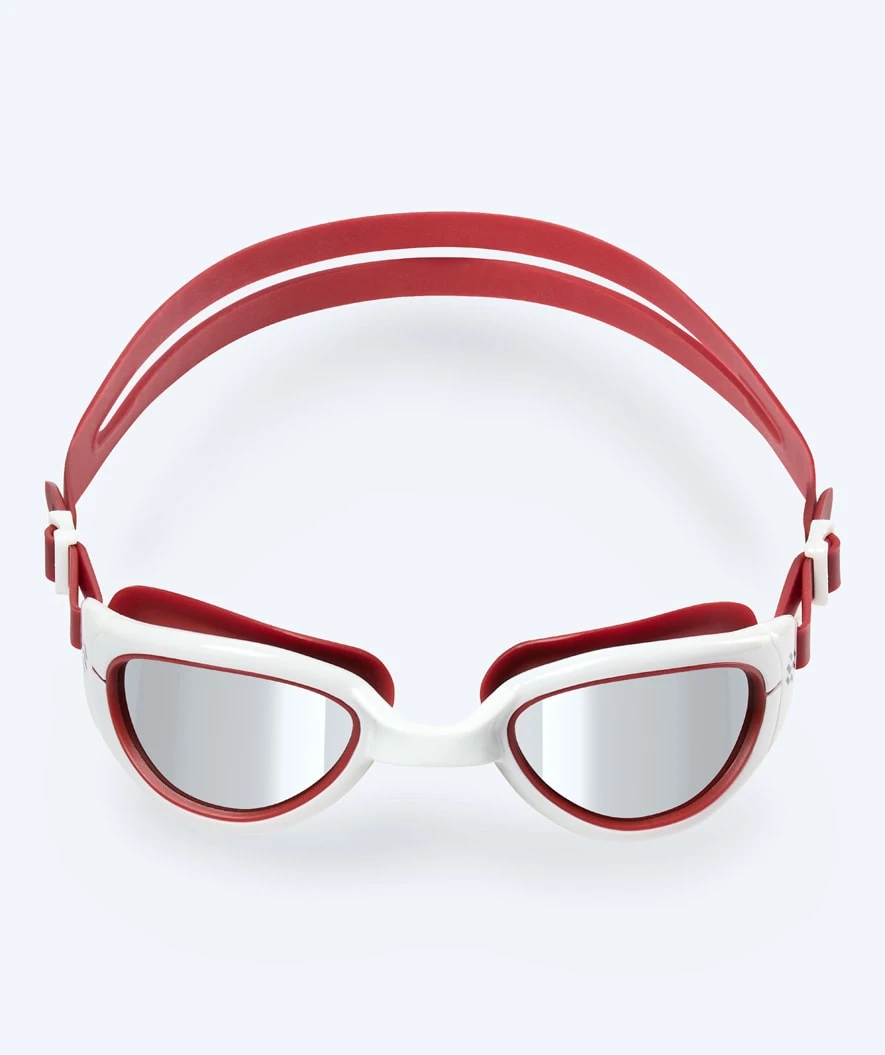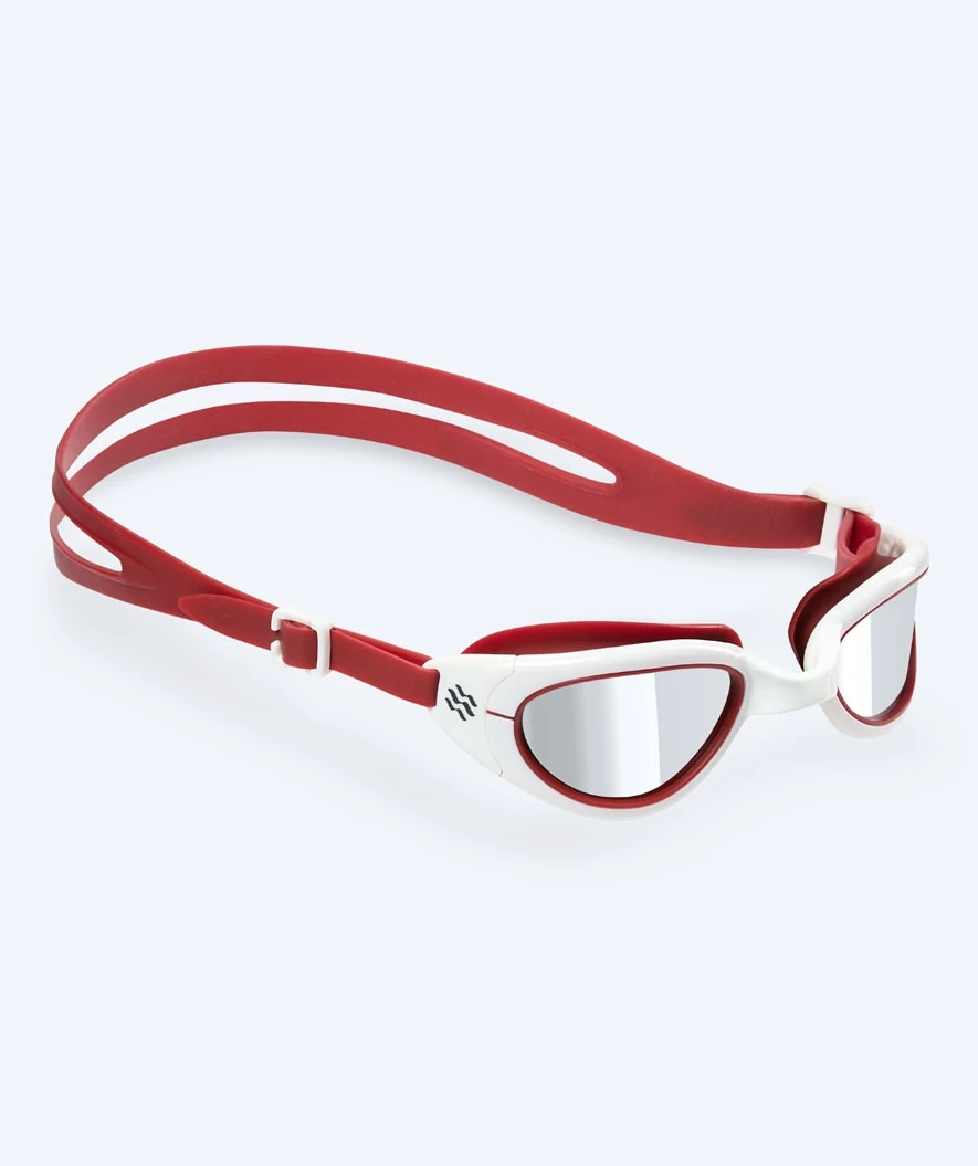 Go fast or go home med Watery Wade Mirror svømmebriller til voksne. Laget til både mannlige og kvinnelige triatlon-, Open Water- og mosjonssvømmere, og fylt opp med egenskaper som antidugg, stort 180 graders utsyn, polariserte linser og konstruksjon i 100 % silikon.