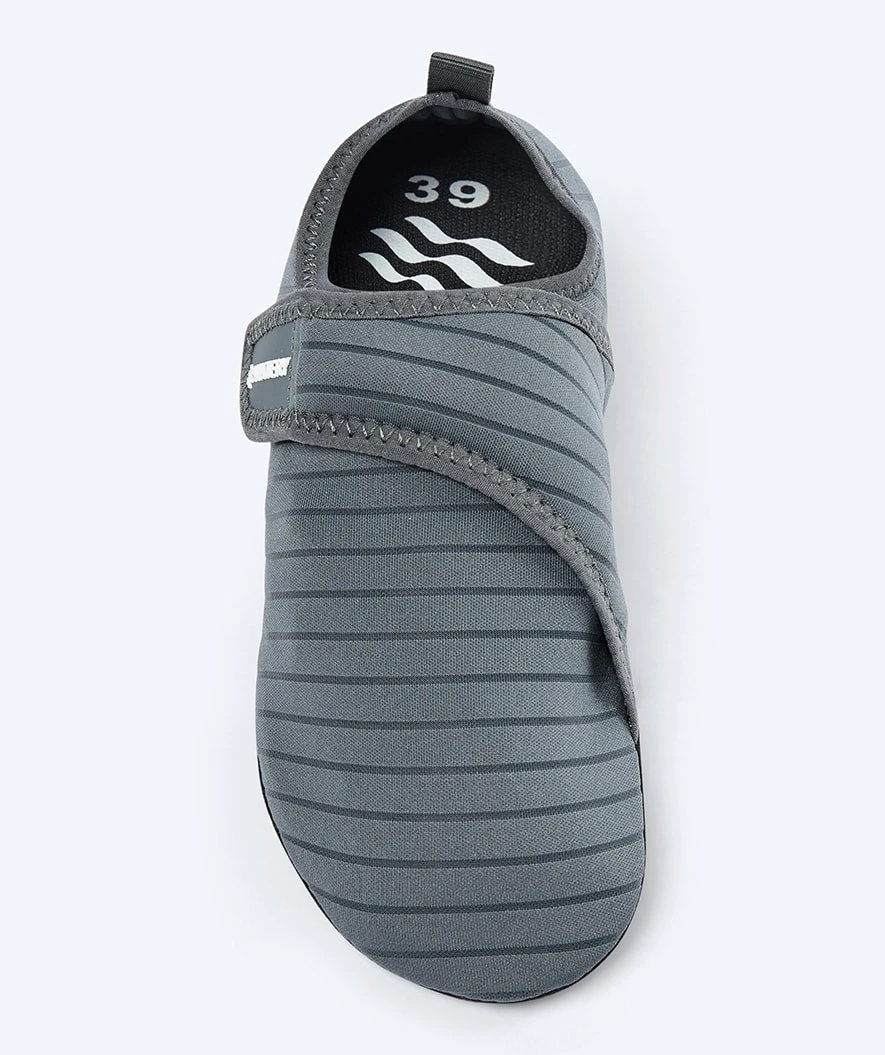Poseidon-badeskoen kommer i fire flotte farger – i tillegg til den grå modellen her finnes den også i blå, sort og lilla. Den er en svært lett sko som man nærmest ikke merker at man har på foten. Og derfor er den særlig populær hos vinterbadere, som har bruk for at skoen ikke faller av i løpet av turen ut i det iskalde vannet.