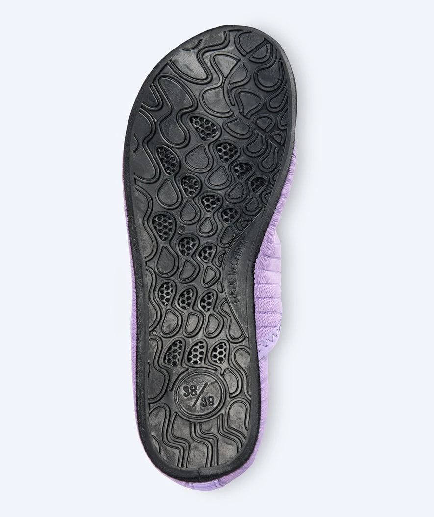 Poseidon-badeskoen kommer i fire flotte farger – i tillegg til den lilla modellen her finnes den også i blå, svart og grå. Den er en svært lett sko som man nærmest ikke merker at man har på foten. Og derfor er den særlig populær hos vinterbadere, som har bruk for at skoen ikke faller av i løpet av turen ut i det iskalde vannet.