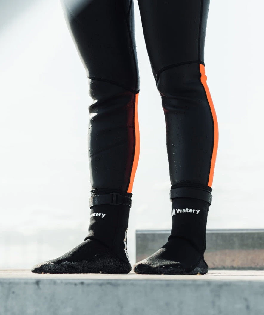 Fleksible sokker i 3 mm neopren som gir optimal varme og lukkes via borrelås. De har sklisikre såler og kan dermed brukes til både svømming og (særlig) SUP. Du kan lese enda mer om sokkene ved å klikke her.