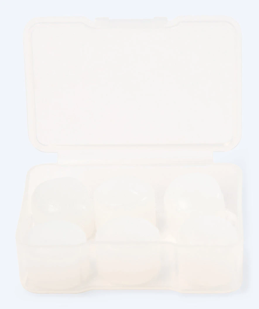 Formbare og vanntette ørepropper for voksne i klar silikon som enkelt kan moduleres etter ørenes konturer, som effektivt holder vann ute og beskytter mot svømmerens øre. Ekstremt behagelig å bruke over lengre tid, da de ikke sitter inne i selve øregangen og forårsaker irritasjon. Derfor egner de seg både til seriøs svømmetrening, vannsport eller bading på ferie.