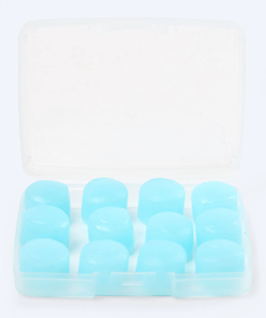 Formbare og vanntette ørepropper for voksne i blå silikon som enkelt kan moduleres etter ørenes konturer, som effektivt holder vann ute og beskytter mot svømmerens øre. Ekstremt behagelig å bruke over lengre tid, da de ikke sitter inne i selve øregangen og forårsaker irritasjon. Derfor egner de seg både til seriøs svømmetrening, vannsport eller bading på ferie.