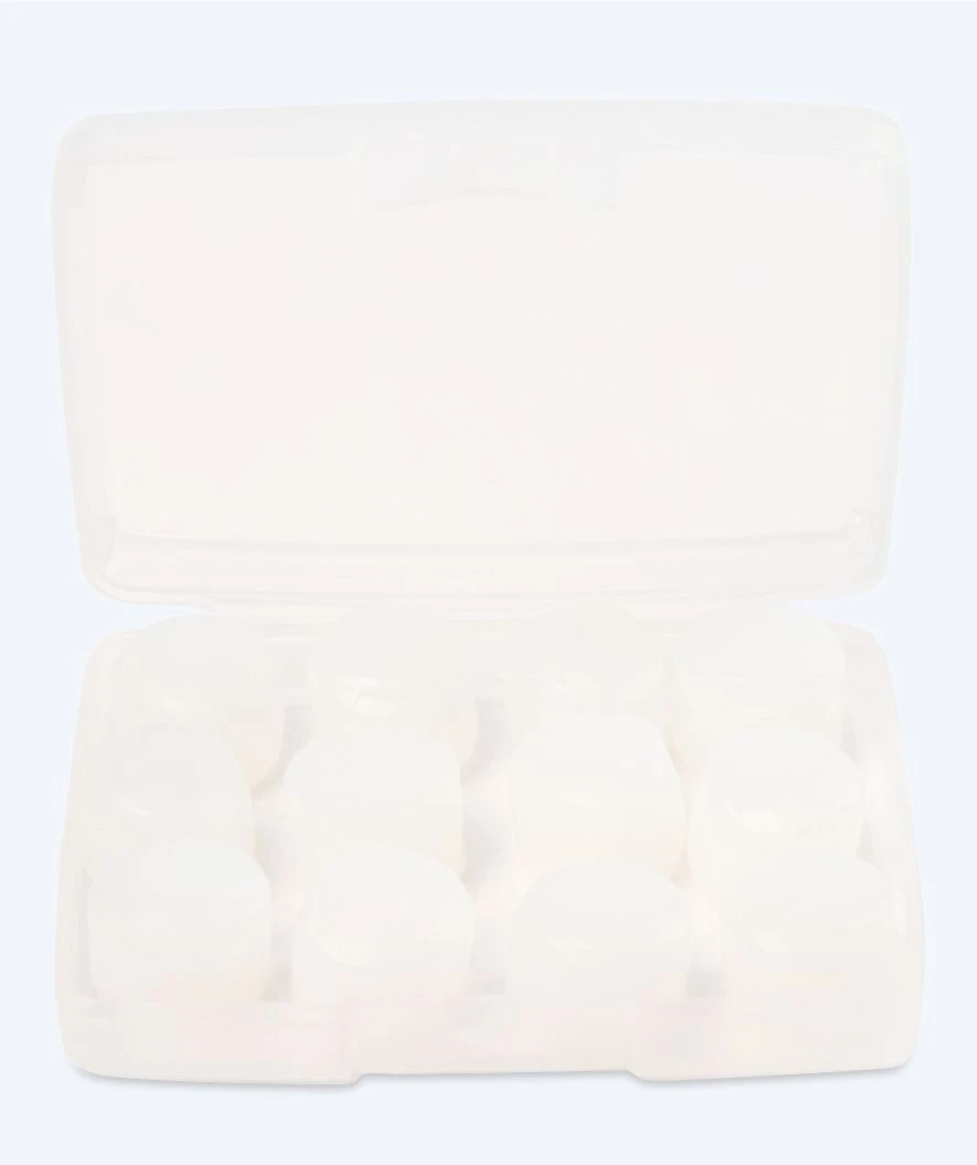 Formbare og vanntette ørepropper for voksne i klar silikon som enkelt kan moduleres etter ørenes konturer, som effektivt holder vann ute og beskytter mot svømmerens øre. Ekstremt behagelig å bruke over lengre tid, da de ikke sitter inne i selve øregangen og forårsaker irritasjon. Derfor egner de seg både til seriøs svømmetrening, vannsport eller bading på ferie.