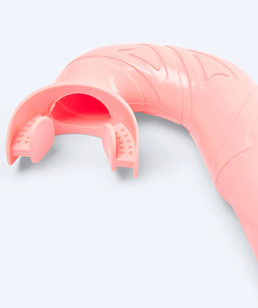 - Munnstykket er laget av høykvalitets silikon med et behagelig bitt særlig tilpasset barn mellom 9 og 16 år. Det kan til og med roteres mens det sitter på, slik at snorkelen hele tiden sitter korrekt. Man kan også ta munnstykket helt av og enten skifte det ut eller bare rengjøre det før det settes på igjen. Sammen sikrer dette at den samme snorkelen kan brukes i flere år – uten å måtte skiftes ut. Munnstykket er selvfølgelig matvaregodkjent.