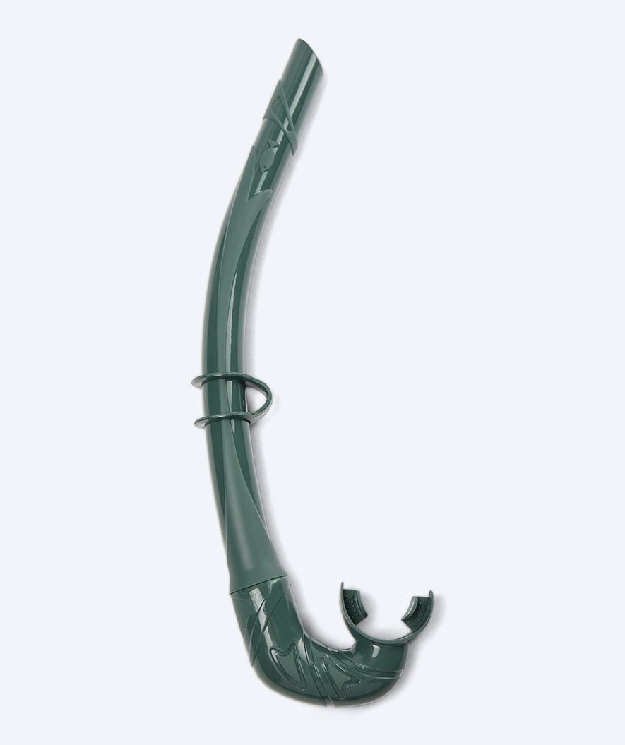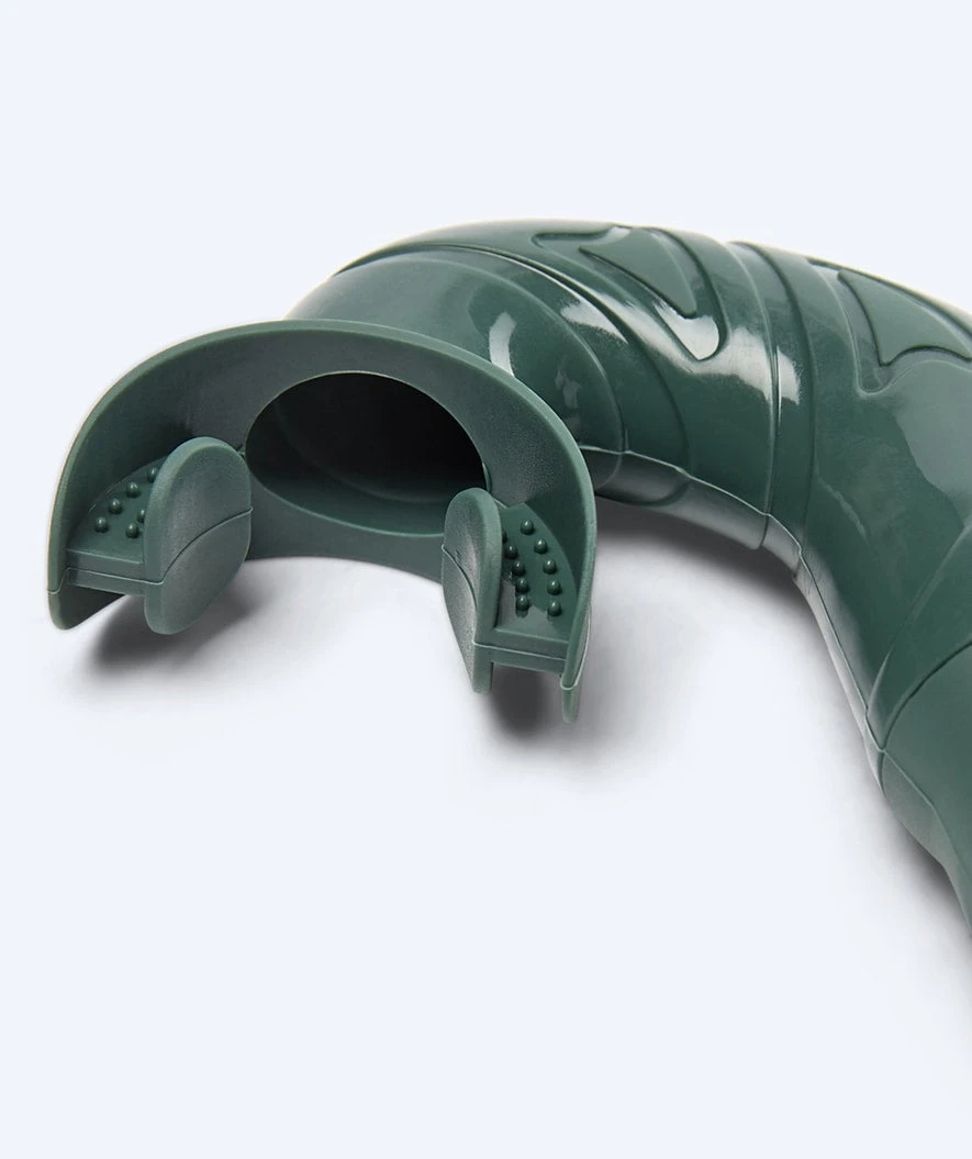 - Munnstykket er laget av høykvalitets silikon med et behagelig bitt særlig tilpasset voksne (16+ år). Det kan til og med roteres mens det sitter på, slik at snorkelen hele tiden sitter korrekt. Man kan også ta munnstykket helt av og enten skifte det ut eller bare rengjøre det før det settes på igjen. Sammen sikrer dette at den samme snorkelen kan brukes i flere år – uten å måtte skiftes ut. Munnstykket er selvfølgelig matvaregodkjent.