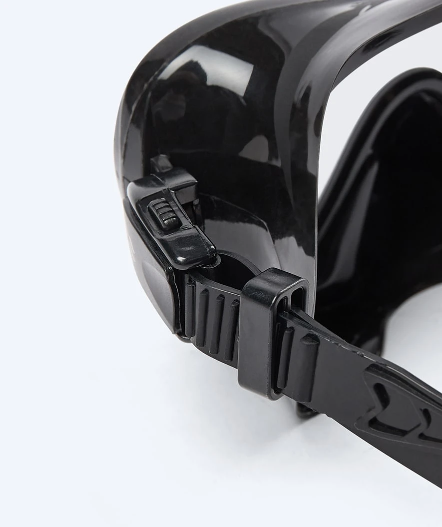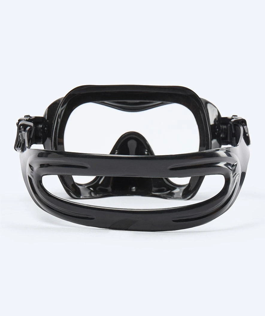 - Dykkermaskens glass er herdet og er dermed svært holdbart sammenlignet med andre dykkermasker.