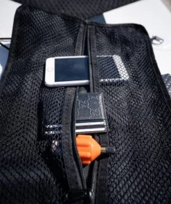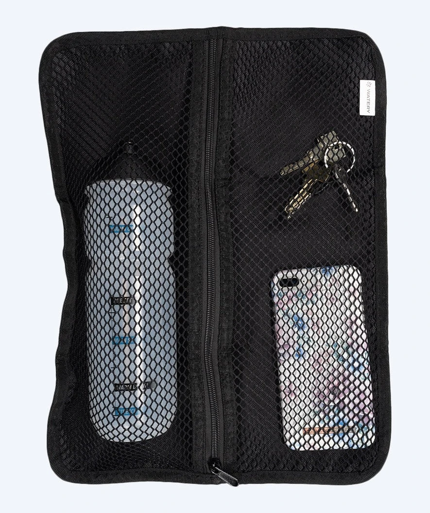 Når du beveger deg mot vannet for å stå på paddleboardet ditt, så har du sannsynligvis med deg mobil, nøkler, lommebok og lignende – disse skal helst ikke ligge ubeskyttet igjen på fast jord. Med denne mesh vesken kan du for eksempel ha alt med deg på snuten av ditt Watery Global paddleboard.