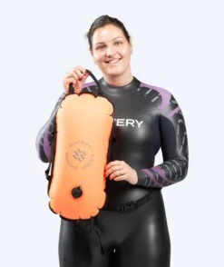 Med Watery Carry Straps Swim Buoy får du et ekstra nivå av sikkerhet, når du svømmer i åpent vann. Havbagen er utstyrt med to stropper på hver side og en enkelt på toppen, som gjør den lett å holde fast i hvis du har bruk for en pause i vannet. Den er produsert i nylon, som utenpå er belagt med PVC. Dette gjør den meget slitesterk og motstandsdyktig.