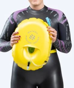 - Buoyen kommer i en kraftig gul farge som gir deg mer synlighet i vannet. Den er også tilgjengelig i fargene rosa og oransje.