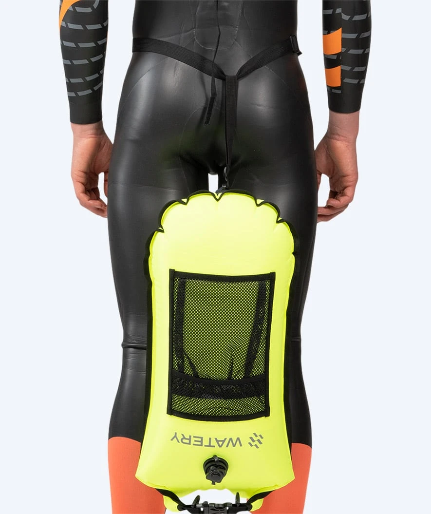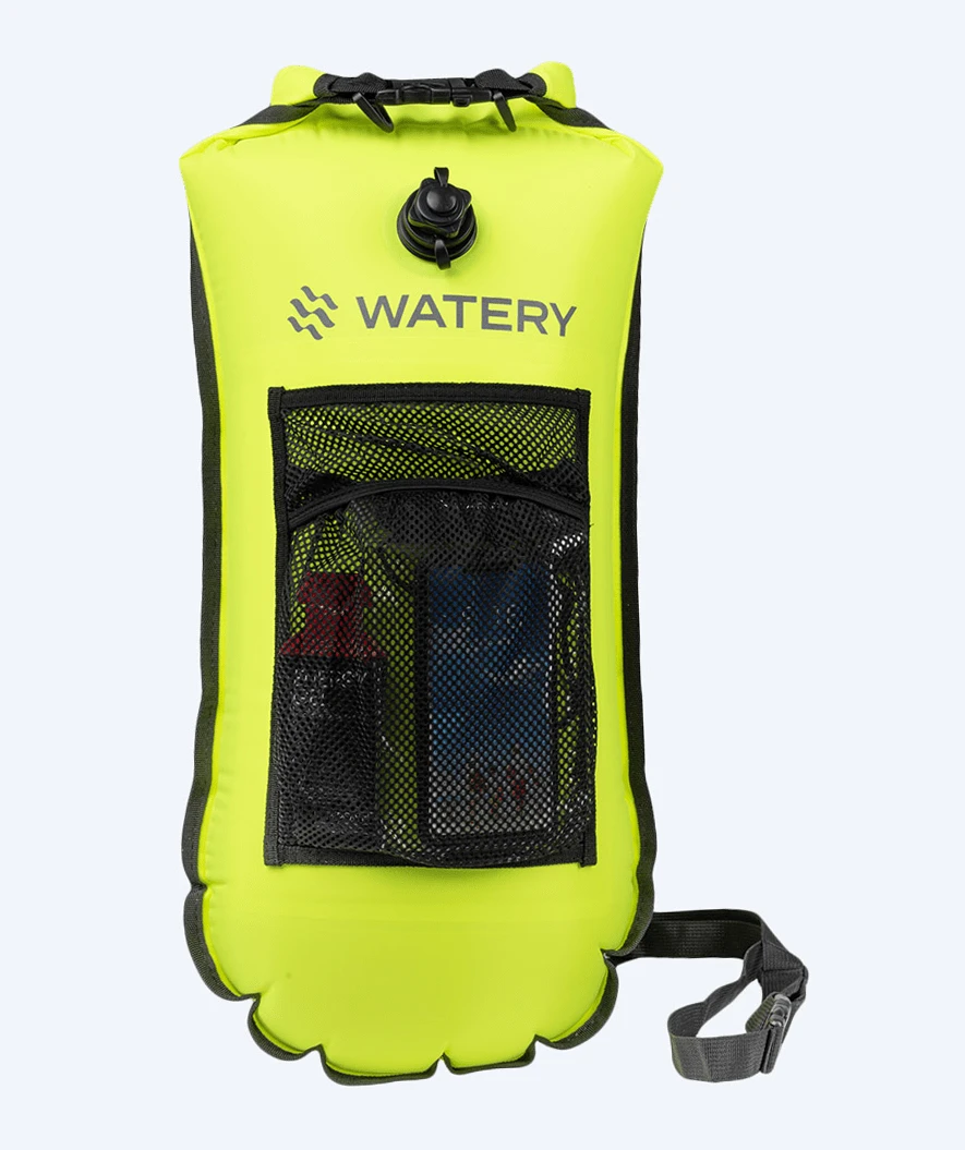 Med Watery Swim Buoy Pro 28L kan du glede deg over ekstra sikkerhet for både deg selv og dine personlige eiendeler når du svømmer i åpent vann. Vår spesielle Pro Swim Buoy inneholder et innvendig tørrrom, hvor du kan oppbevare klesskifte, håndkle, sko etc. under svømmeturen, i tillegg til en lett tilgjengelig utvendig nettinglomme, hvor du har enkel tilgang til for eksempel vannflaske, GoPro eller energigelé.