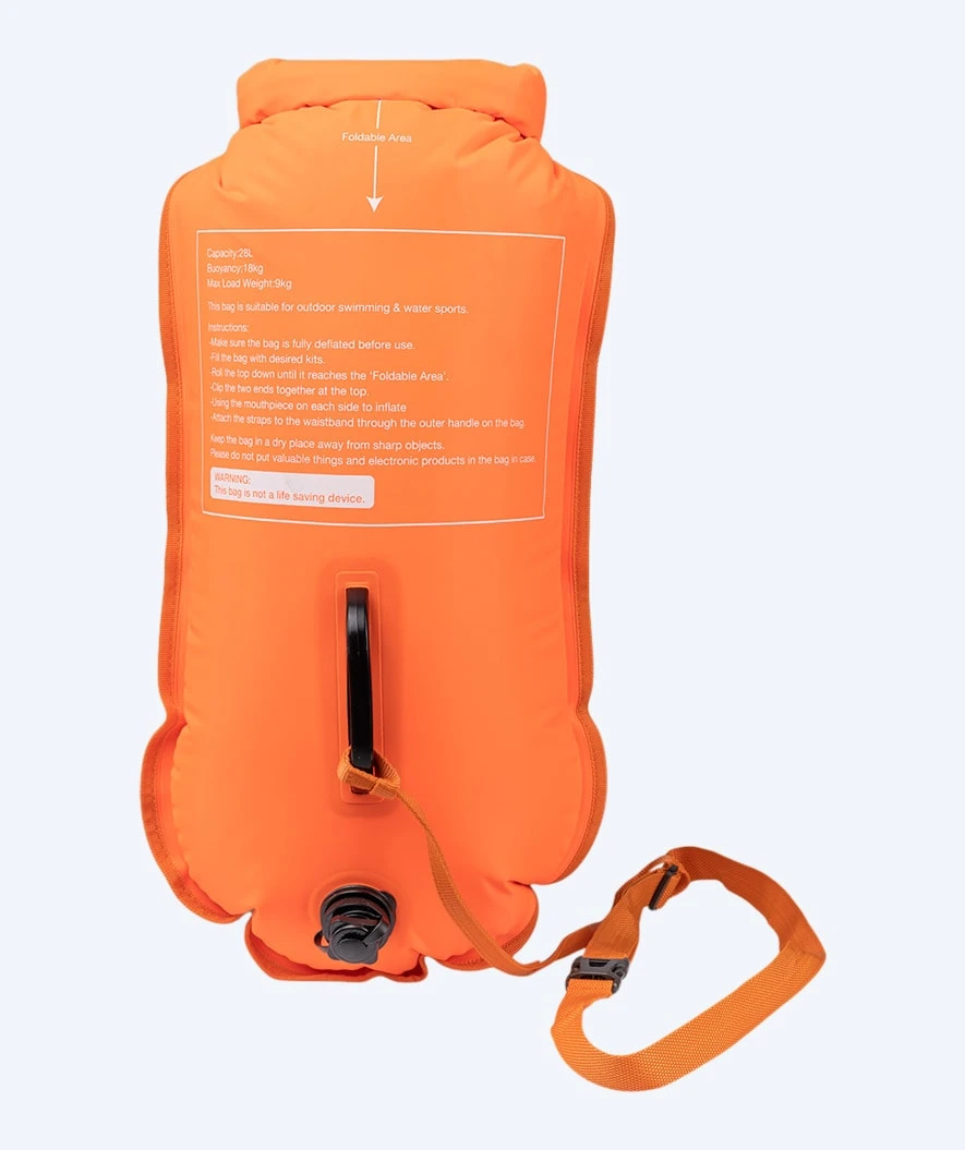 - Svømmebøyen har 2 håndtak, ett på hver side, som gjør det lettere å bære posen til og fra vannet, og som også er fint når du har behov for å hvile under svømmeturen.