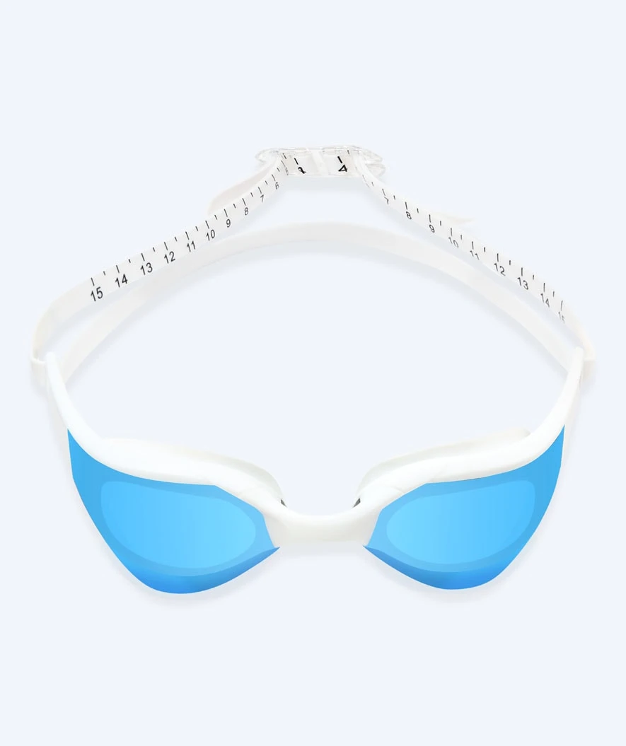 Stroppene på Instinct Elite Mirror er todelt, så du kan plassere de en smule fra hverandre bak på hodet for å oppnå en fastere og sikrere passform, slik at de ikke faller av under stup eller tar inn vann. I tillegg er det tilføyd centimeter-markeringer på begge stroppene, så du alltid kan stille inn lengden til den som passer deg best. - 180 grader uhindret utsyn