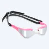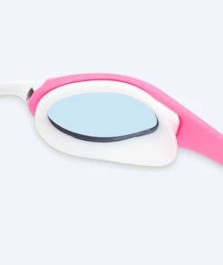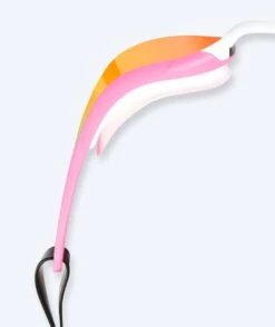 Denne Instinct Elite Mirror er rosa med gull mirror, og den kan brukes både i svømmehallen og på stranden. Instinct Elite fås i fargene: sort, lilla, hvit, rosa, rød og blå. Instinct fås med gull mirror med rammer i fargene hvit, rosa og sort, samt med blå mirror med rammer i hvitt og sort.