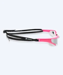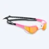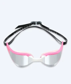 Denne Instinct Elite Mirror er rosa med sølv mirror, og den kan brukes både i svømmehallen og på stranden. Instinct Elite fås i fargene: sort, lilla, hvit, rosa, rød og blå. Instinct fås med gull mirror med rammer i fargene hvit, rosa og sort, samt med blå mirror med rammer i hvit og sort