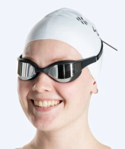 Denne Instinct Elite Mirror er sort med sølv mirror, og den kan brukes både i svømmehallen og på stranden. Instinct Elite fås i fargene: sort, lilla, hvit, rosa, rød og blå. Instinct fås med gull mirror med rammer i fargene hvit, rosa og sort, samt med blå mirror med rammer i hvitt og sort.