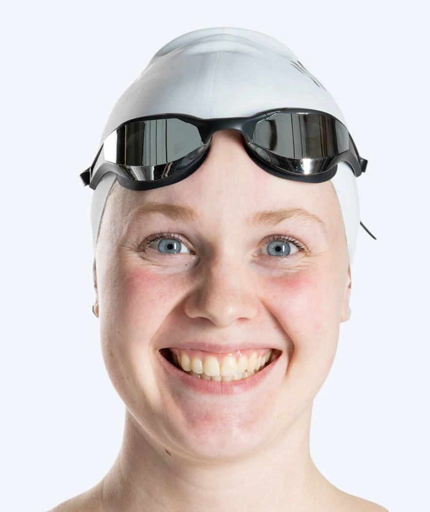 Instinct Elite Mirror har en lavprofils ramme med avrundede glass, som derfor sitter tett rundt øynene og sikrer at vannet strømmer naturlig rundt brillen. Det betyr at den lager minimal vannmotstand i sammenligning med større masker/briller, som sitter rundt øynene og “stopper” vannet. - Premium silikon øyekopp med unik sugeevne