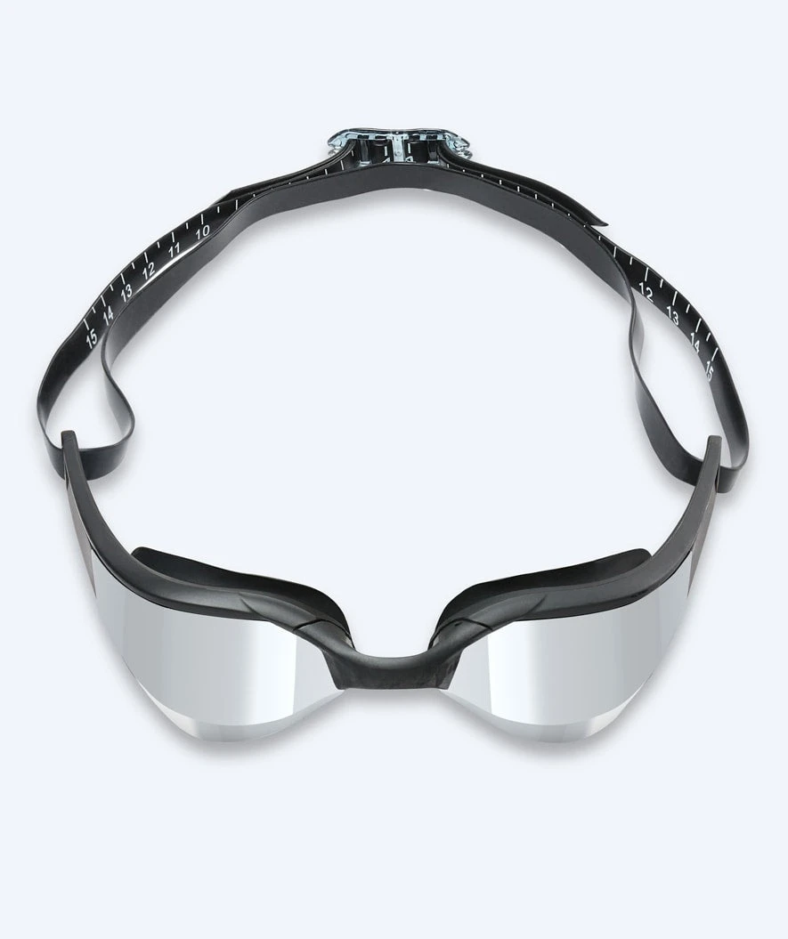 Stroppene på Instinct Elite Mirror er todelt, så du kan plassere de en smule fra hverandre bak på hodet for å oppnå en fastere og sikrere passform, slik at de ikke faller av under stup eller tar inn vann. I tillegg er det tilføyd centimeter-markeringer på begge stroppene, så du alltid kan stille inn lengden til den som passer deg best. - 180 grader uhindret utsyn