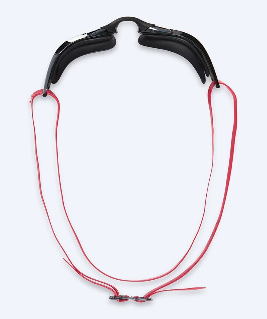 Den polariserte linsen har også en innebygd anti-dugg teknologi, hvor du bare trenger å dyppe svømmebrillene i vannet før bruk, hvorpå anti-duggen aktiveres av seg selv, så du kan svømme med et klart syn uten å bekymre deg over dugg. Da dette er innebygd i designet vil ikke anti-duggen falme eller forsvinne over tid eller ved riper. - Doble stropper med cm markeringer