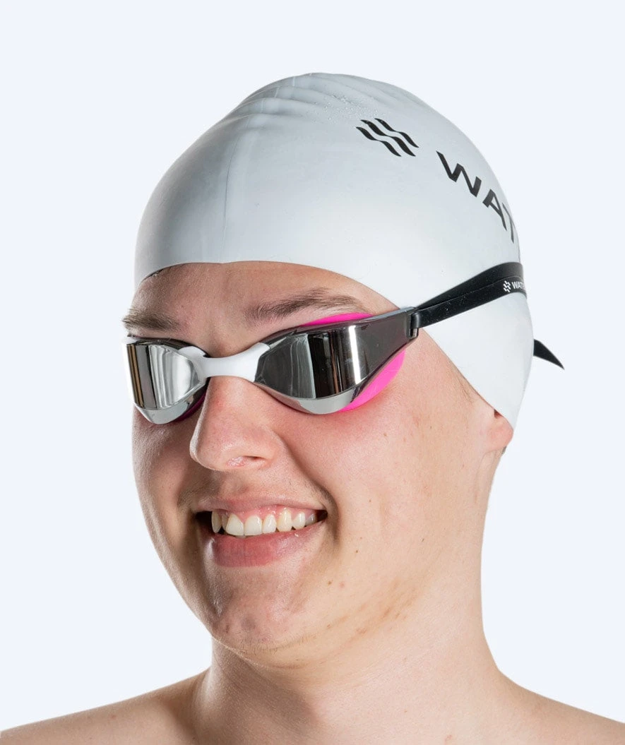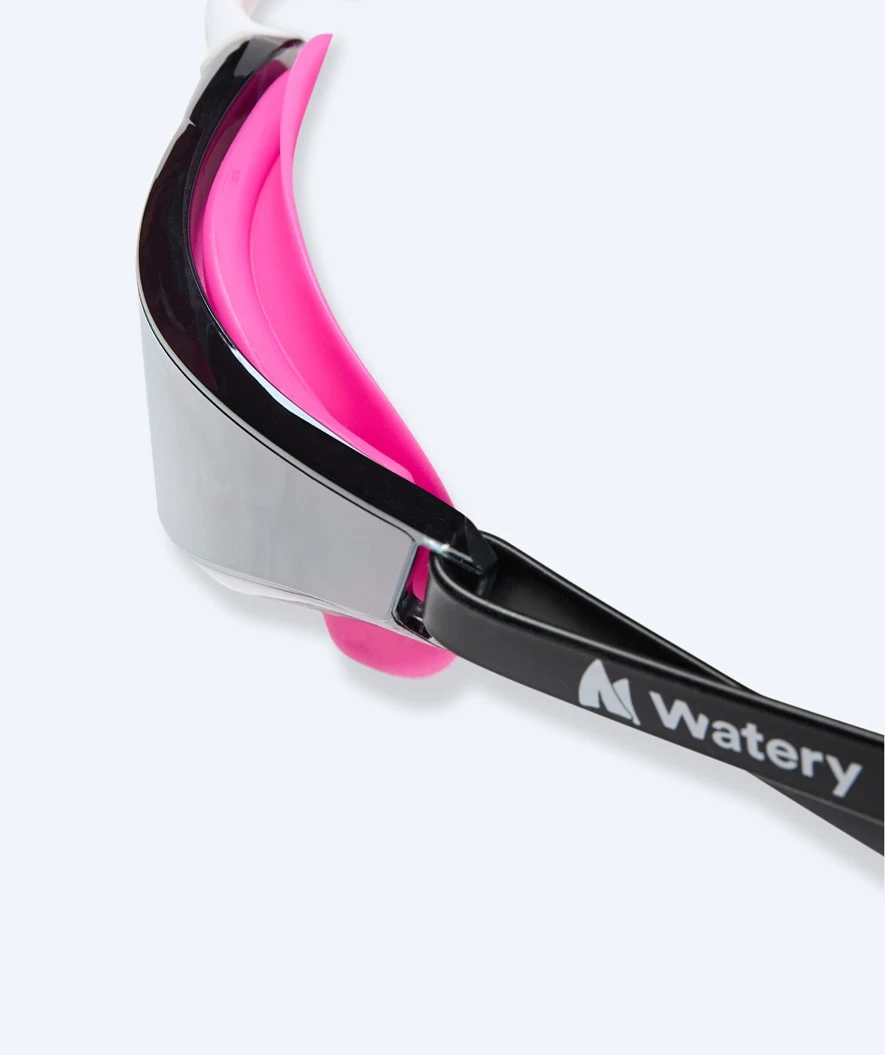 Watery Instinct Mirror er vår mest avanserte svømmebrille til stevner og svømmetreninger. Med et unikt hydrodynamisk design, som minimerer vannmotstanden, og utrolig myke 3D-tilpassede silikon øyekopper, som medfører en komfortabel og vanntett passform, så gir Instinct Mirror de optimale betingelsene for en god svømmetur.