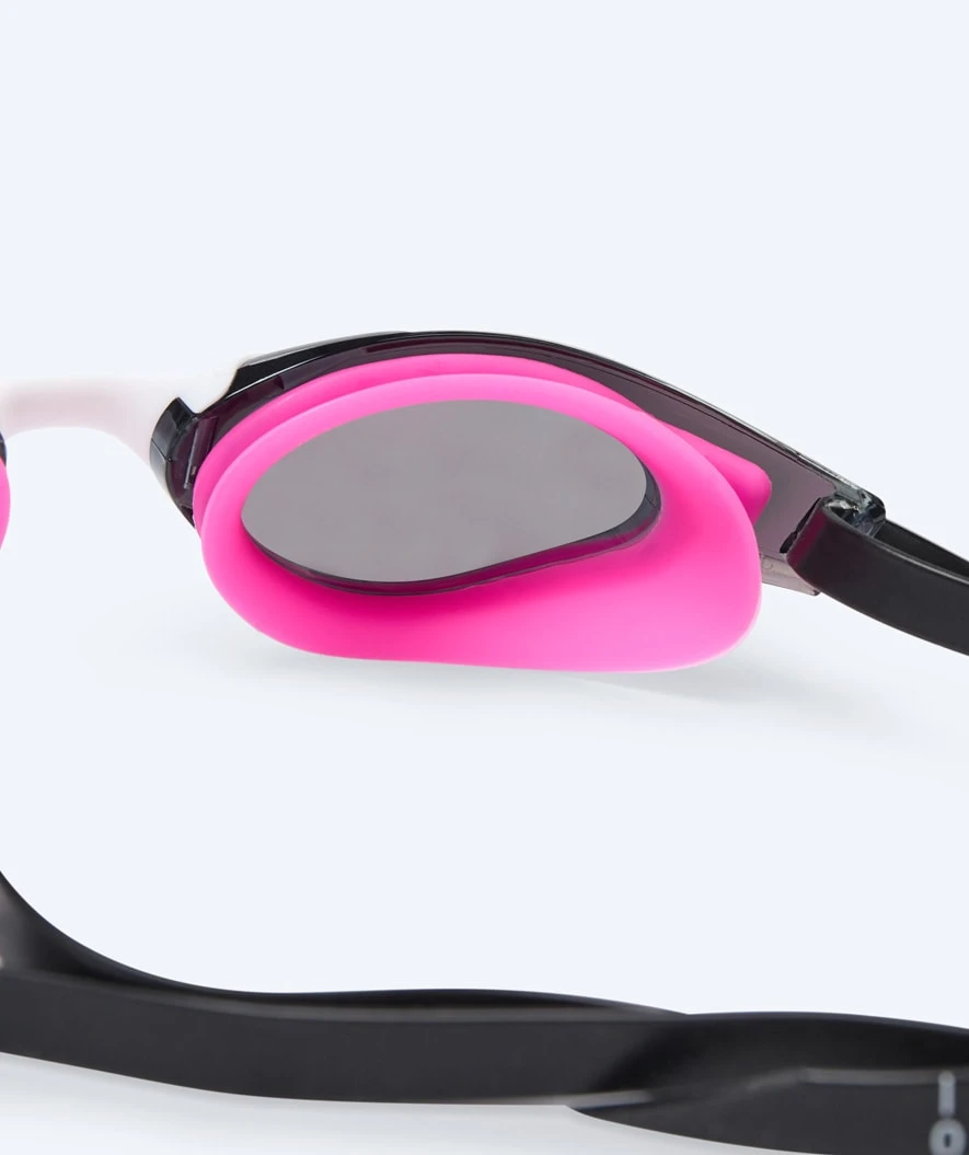 Watery Instinct Mirror passer til svømmere fra 14 år og opp. Det følger med 4 ekstra nesebroer i ulike størrelser, så de lett kan tilpasses til det enkelte ansikt .