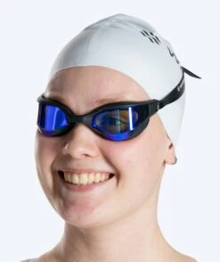 Denne Instinct Ultra Mirror er sort med blå mirror, og den kan brukes både i svømmehallen og på stranden. Instinct Ultra fås med sølv mirror og rammer i fargene sort, hvit, rosa, lilla, blå og rød. Instinct Ultra fås med gull mirror og rammer i fargene hvit, rosa og sort, samt med blå mirror med rammer som er hvite og sorte.