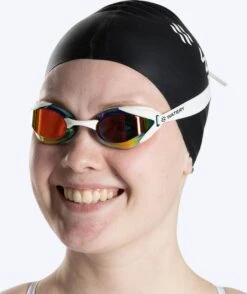 Designet til å gjøre deg raskere i vannet med et hydrodynamisk lav-profils design, laget med myke silikon øyekopper, så de sitter komfortabelt, har et større 180 graders utsyn fra de kurvede linsene, samt med Mirror-linse, som avskjærer sol og gjenskinn fra øynene. Med dette er Poseidon Ultra Mirror med de samme blitt en av våre meste populære svømmebriller til både konkurranse og mosjonssvømmere, som vektlegger redusering av vannmotstand, komfort og et bredt utsyn. Her i vår hvite farge med gull mirror.
