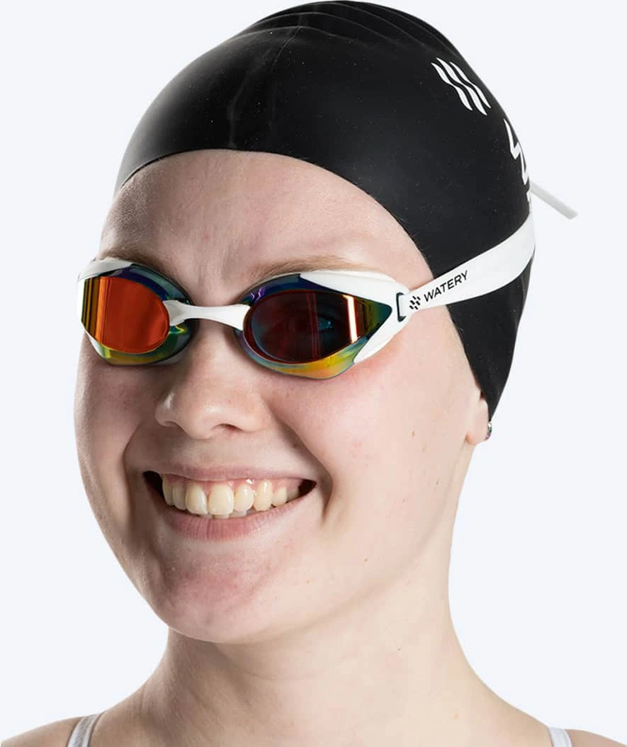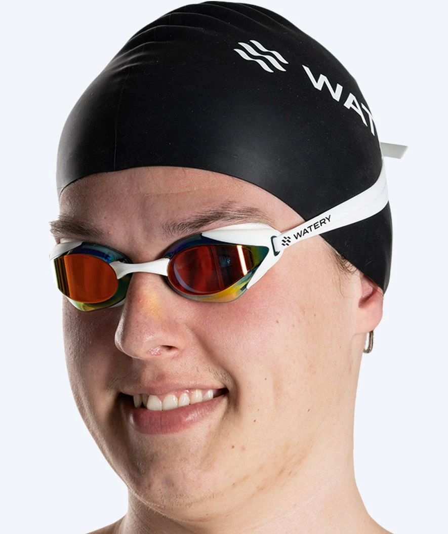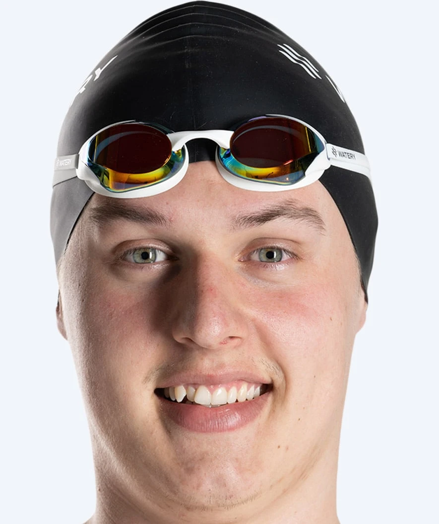 Watery Poseidon Ultra Mirror er vår toppmodell innenfor svømmebriller, som passer til svømmere fra 12 år og opp. Det følger med 2 ekstra nesebroer i ulike størrelser, så de lett kan tilpasses til det enkelte ansikt.