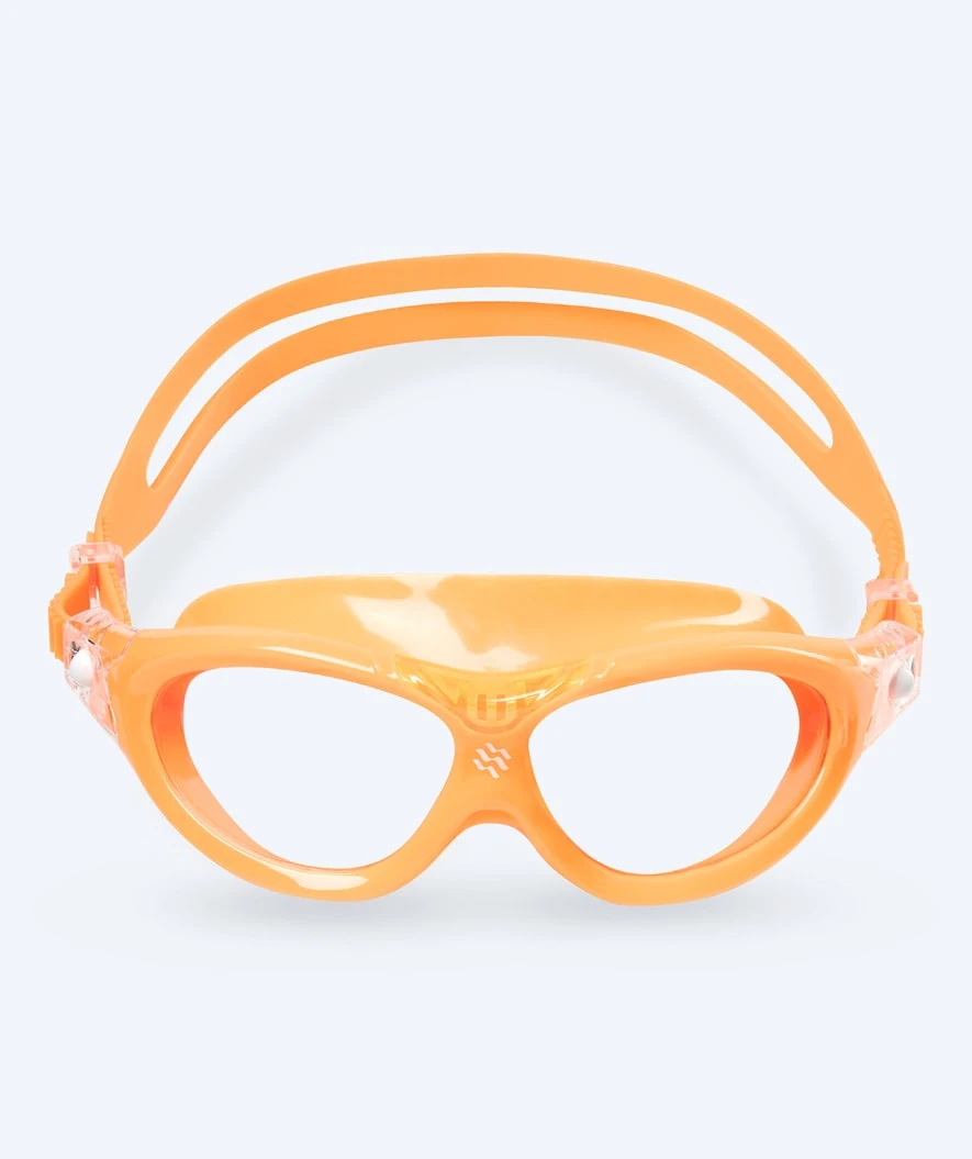 Vår mest populære svømmebrille til barn. Nå i en forbedret 2.0 versjon. Med et stort 180 graders utsyn, en sikker og behagelig passform, som ikke lar vann komme inn i brillen og en anti-dugg behandlet linse, så er Mantis 2.0 til barn allerede favoritten hos + 10.000 barn mellom 4 og 12 år. Her i vår oransje farge med klar linse.