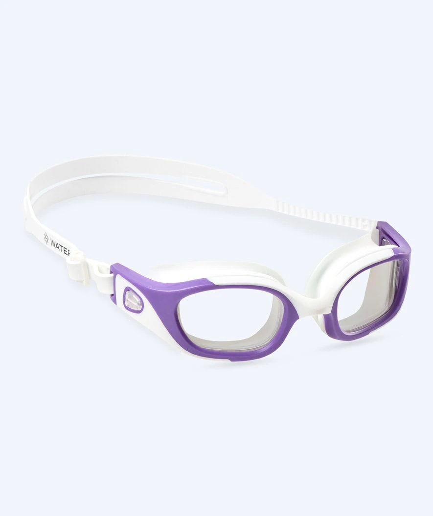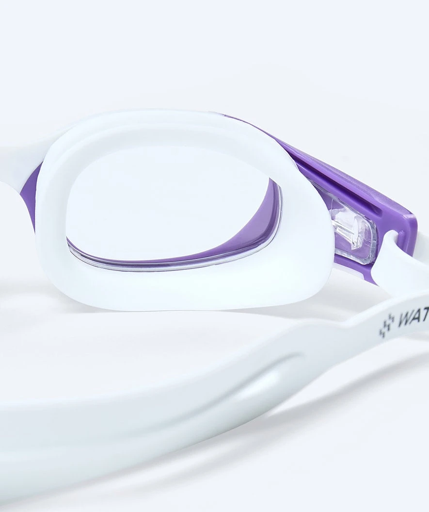 Denne Clyde Active modellen er i lilla farge med klar linse, og kan brukes både i svømmebassenget og på stranden. I tillegg til denne modellen, er også Clyde-modellen tilgjengelig i flere farger med mirror glass. Den har nøyaktig samme briller og funksjoner, den eneste forskjellen er Mirror-linsen, som betyr at folk ikke kan se inn i øynene dine utenfra.