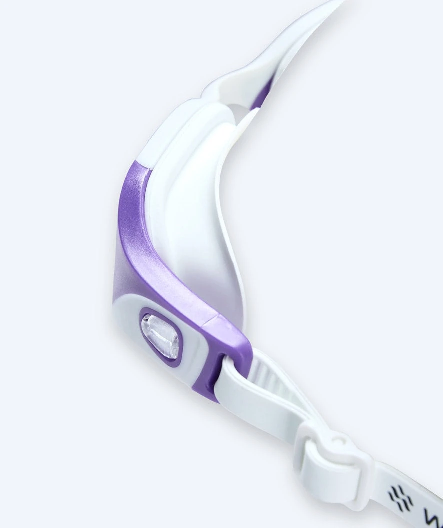Svømmebrillene har en litt større profil/ramme enn andre modeller, noe som gir en fastere følelse i ansiktet. Du vil imidlertid fortsatt kunne glede deg over 180-graders uhindret utsyn takket være de unike high-definition linsene som gir skarp sikt selv i øyekroken.