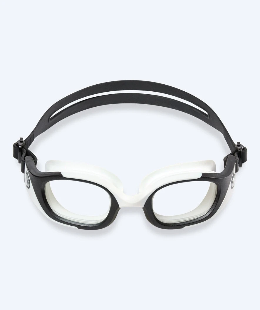 Svømmebrillene har en litt større profil/ramme enn andre modeller, noe som gir en fastere følelse i ansiktet. Du vil imidlertid fortsatt kunne glede deg over 180-graders uhindret utsyn takket være de unike high-definition linsene som gir skarp sikt selv i øyekroken.