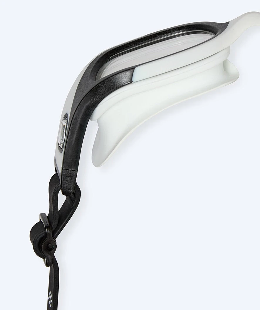 - Antidugg behandlet slik at du unngår det verste en svømmebrille kan gjøre. Den 3D-tilpassede øyekoppen sørger også for at det ikke dannes kondens inne i selve brillene, noe som vanligvis forårsaker dugg.