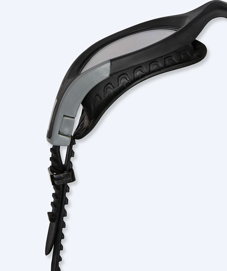 - Todelt stropp som sikrer at brillene sitter riktig – uten å måtte stramme dem unødvendig. Stroppene har også anti-skli på seg slik at de blir sittende når du først har satt dem på hodet.