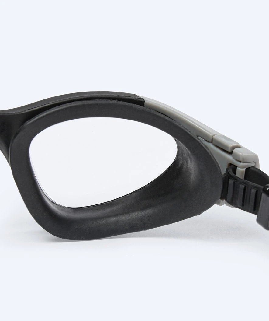 - Antidugg behandlet slik at du unngår det verste en svømmebrille kan gjøre. Den 3D-tilpassede øyekoppen sørger også for at det ikke dannes kondens inne i selve brillene, noe som vanligvis forårsaker dugg.