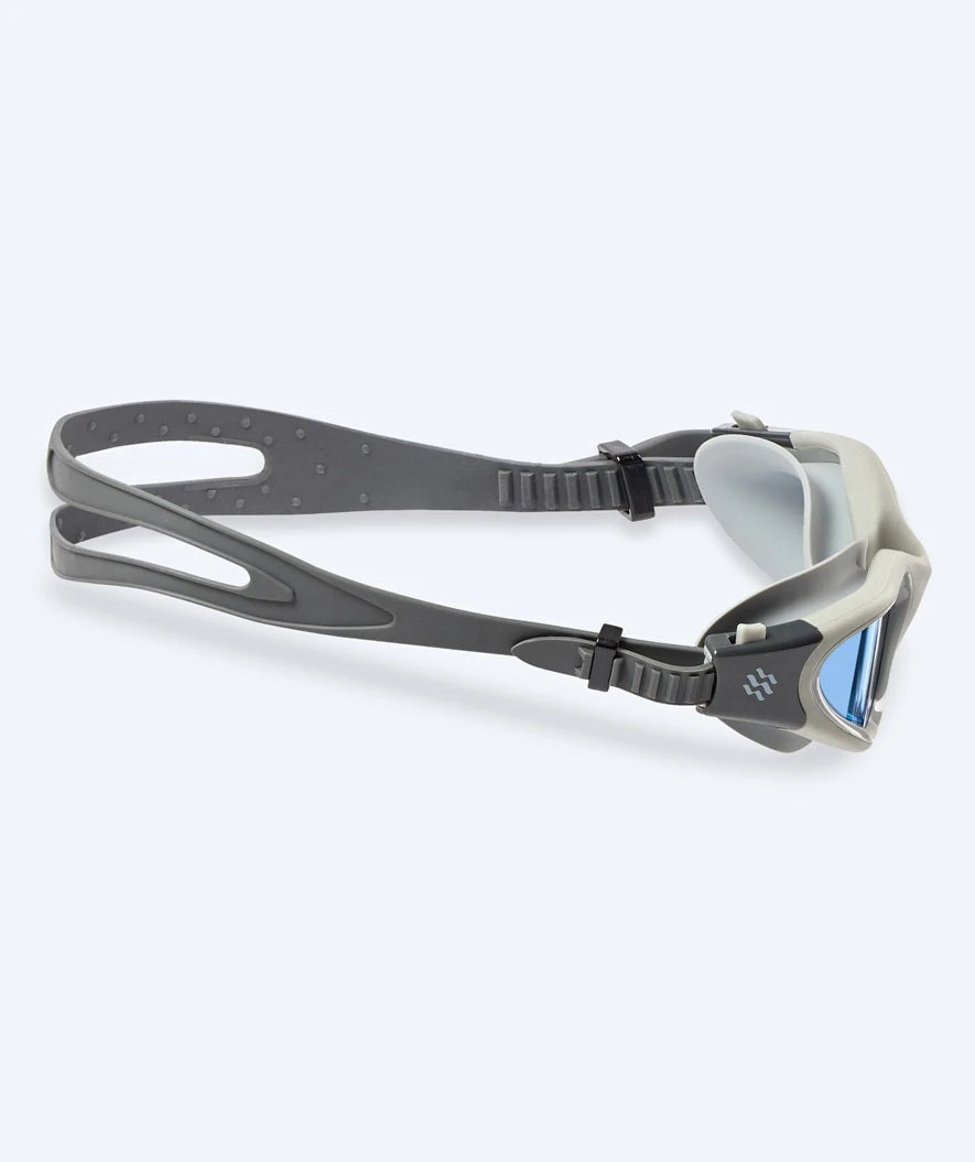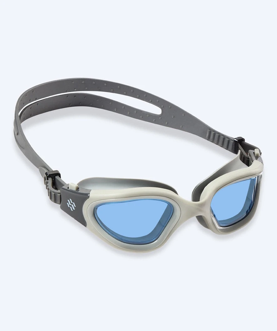 Dette er våre mest komfortable svømmebriller med en unik 3D-laget passform som sikrer at vann ikke kommer inn i brillene og at det ikke etterlates merker rundt øynene – derfor har Raven Active også raskt blitt våre mest populære svømmebriller blant både kvinner og mannlige fritids- og open water svømmere, samt vanlige badegjester som er opptatt av komfort og passform. Her i grå farge med blå glass.