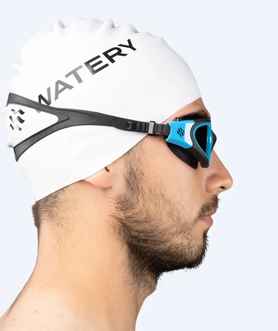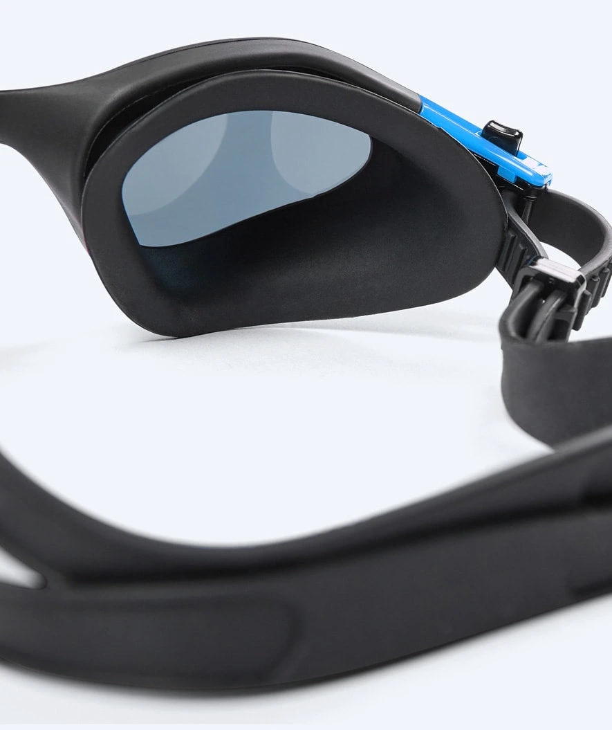 Dette er våre mest komfortable svømmebriller med en unik 3D-laget passform som sikrer at vann ikke kommer inn i brillene og at det ikke etterlates merker rundt øynene – derfor har Raven Active også raskt blitt våre mest populære svømmebriller blant både kvinner og mannlige fritids- og open water svømmere, samt vanlige badegjester som er opptatt av komfort og passform. Her i sort/blå farge med sotet glass.