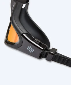 Dette er våre mest komfortable svømmebriller med en unik 3D-laget passform som sikrer at vann ikke kommer inn i brillene og at det ikke etterlates merker rundt øynene – derfor har Raven Mirror også raskt blitt våre mest populære svømmebriller blant både kvinner og mannlige fritids- og open water svømmere, samt vanlige badegjester som er opptatt av komfort og passform. Her i sort farge med gull mirror.