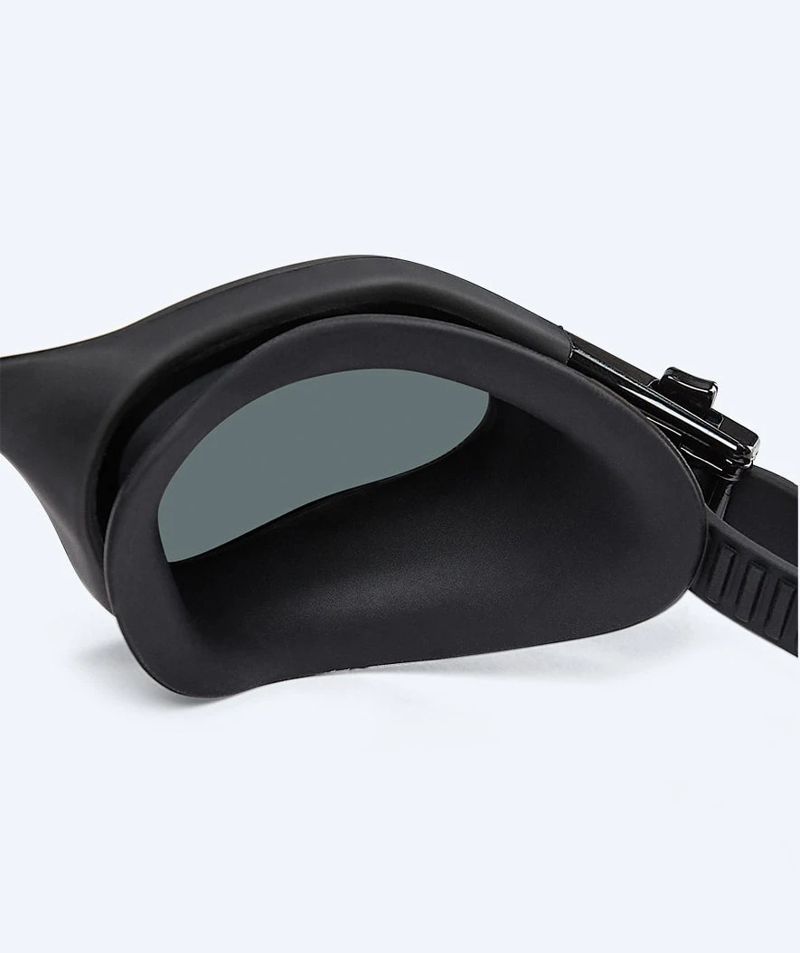 Raven Mirror er laget med buede high-definition linser som gir bredest mulig 180 graders sikt til begge sider slik at du alltid har full orientering under vann. I tillegg sørger high-definition linsene at du, til tross for det brede synsfeltet, fortsatt har skarp sikt helt ut til sidene, i motsetning til vanlige svømmebriller som kun gir deg skarphet i midten av linsen – altså når du ser rett frem i brillene. - Fleksibel og myk nesebro