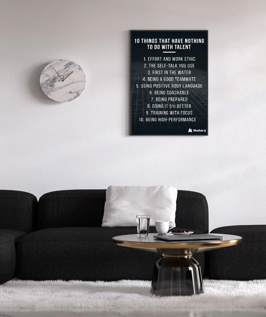 Ny kolleksjon: Denne plakaten med teksten «»10 things that have nothing to do with talent»» er laget i størrelsen B2 (50*70 cm) i en lekker kvalitet med UV-lakk på overflaten.