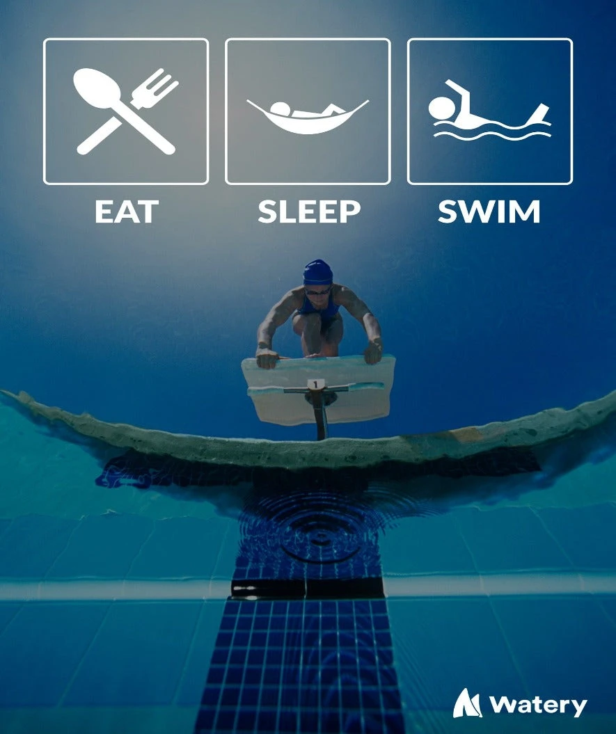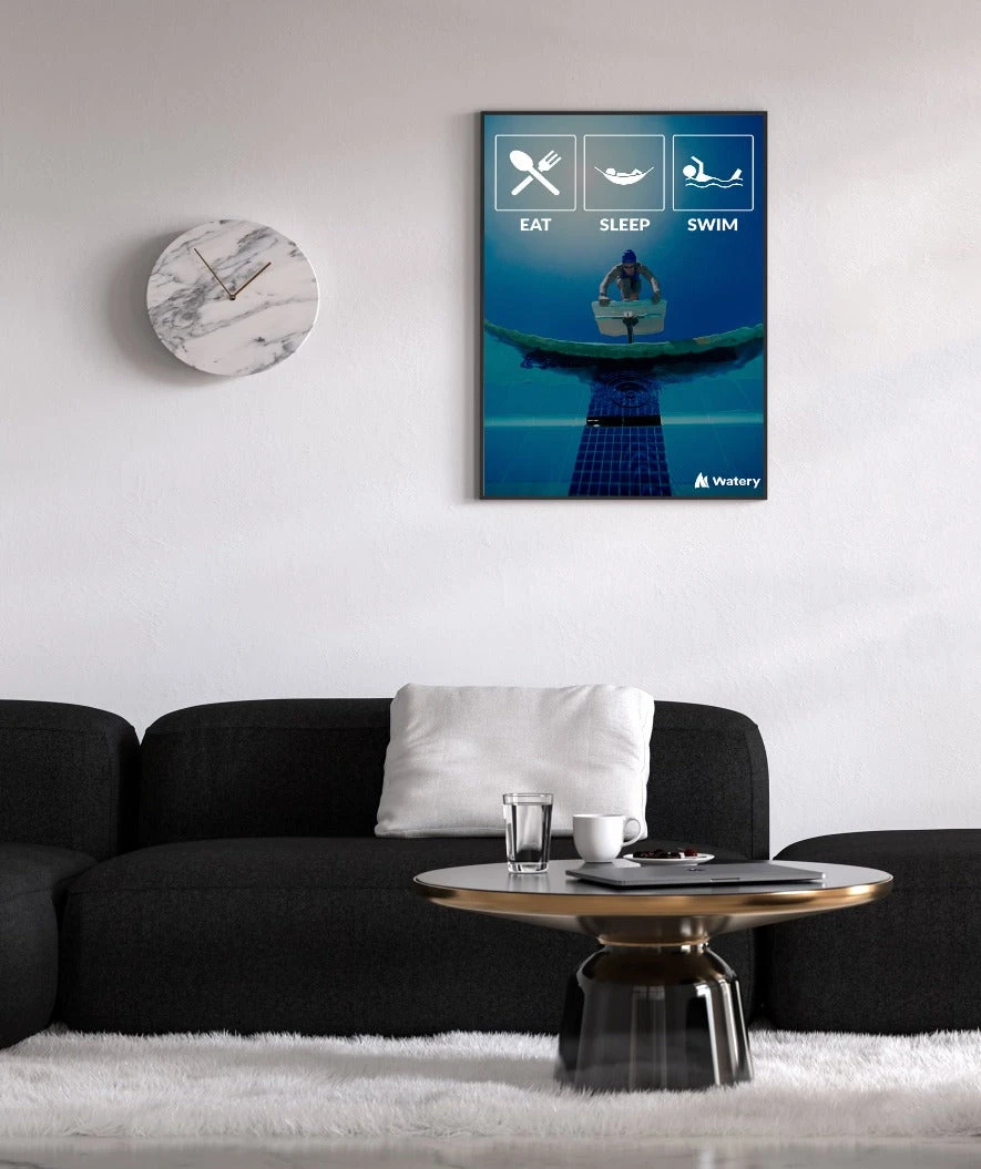 Så få din fantastisk varierte hverdag illustrert med «Spis – Sov – Svøm», og bli hver eneste dag påminnet om hvorfor du helt enkelt elsker å være svømmer.