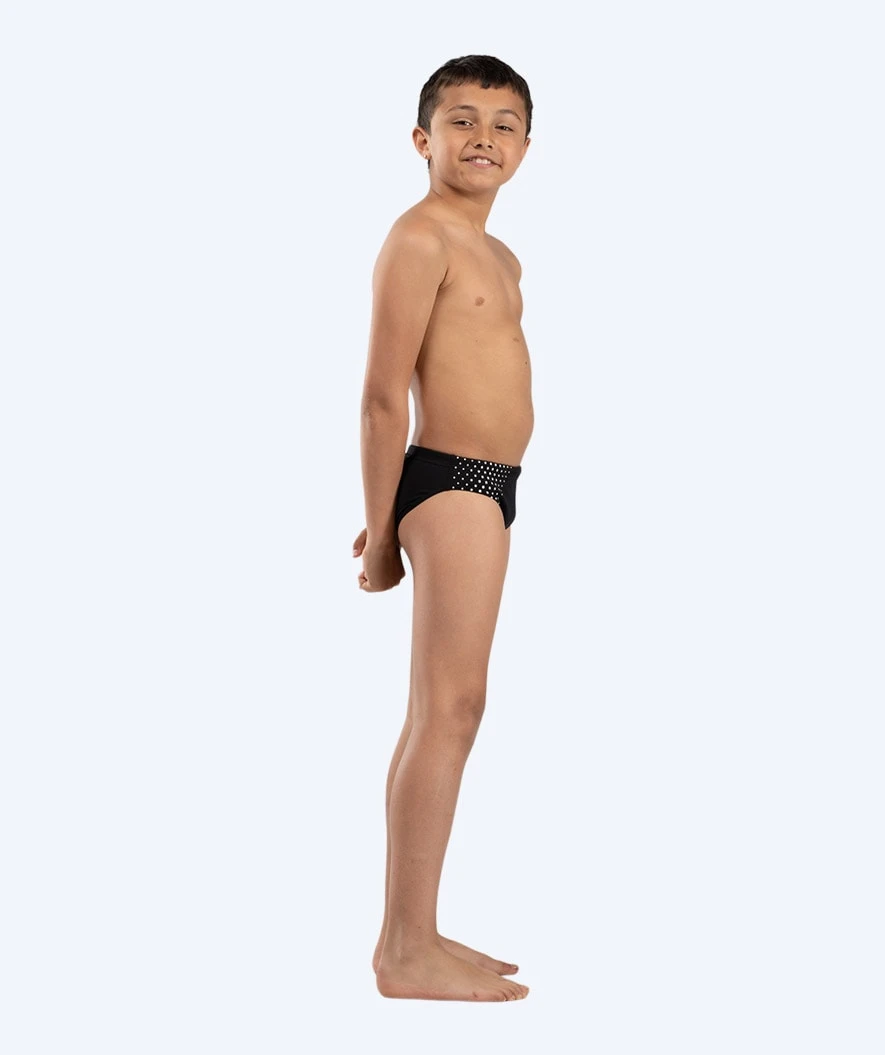 Det blir aldri feil med disse Budgie Eco trekantede badebuksene til gutter – de blir bare mer og mer populære blant de yngre. Både blant svømmere til banesvømming i svømmehallen, men også til en tur på stranden eller i bassenget.