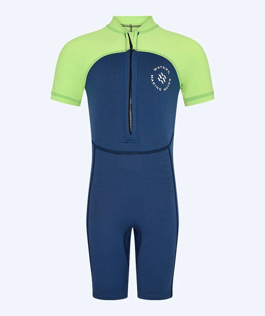 Vår mest populære svømmedrakt til barn med unike UV- og varmeegenskaper er denne Calypso shorty våtdrakten for barn i alderen 1 til 15 år. Watery Calypso er en kortermet våtdrakt med korte ben og høy fleksibilitet ved skuldrene, som vil holde barnet ditt varmt både i svømmehallen og på stranden og som samtidig beskytter barnet mot solens UPF+50-stråler.