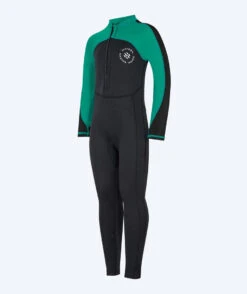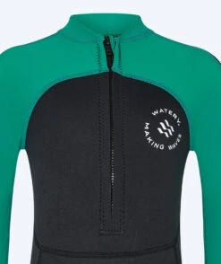 - Våtdrakten er konstruert i 2 mm neoprene i beina og kroppen, så barnet ditt holdes varmt og blir 100 % beskyttet mot solens stråler. Samtidig gir det god oppdrift for barnet. De mørke fargene er er valgt her for å gi ytterligere varme.